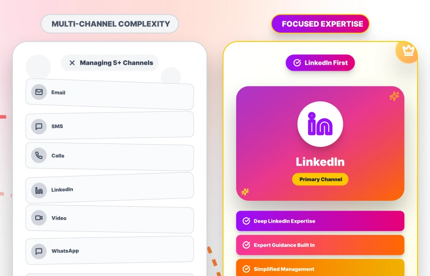 For teams prioritizing LinkedIn as their primary channel with expert guidance built in, Interceptly delivers specialized expertise without the complexity of managing 5+ channels simultaneously.