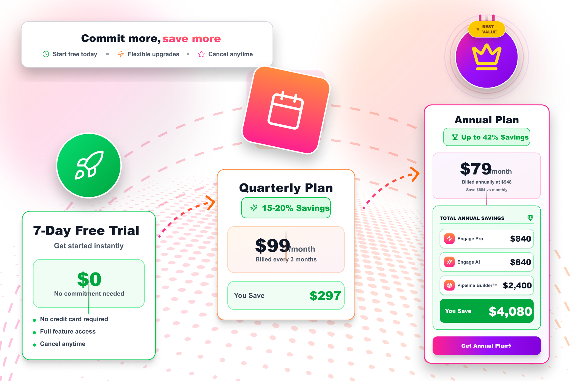 Choose the right plan for your stage. Run multi-channel sales campaigns, activate buyer intent data, or move to fully managed lead generation. Upgrade as your pipeline grows. Every tier includes a 7-day free trial to explore the platform risk-free.