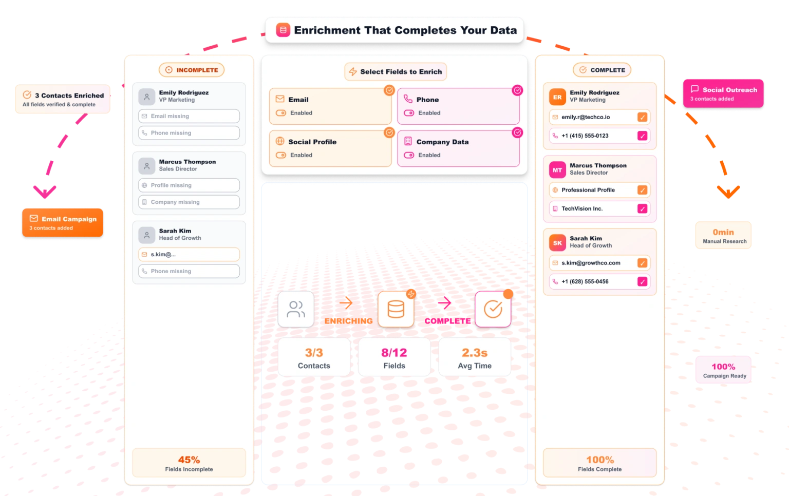 Sometimes you can identify the right companies and decision-makers, but key contact details are missing. You may have names without emails, emails without phone numbers, or incomplete records that limit the effectiveness of outreach.