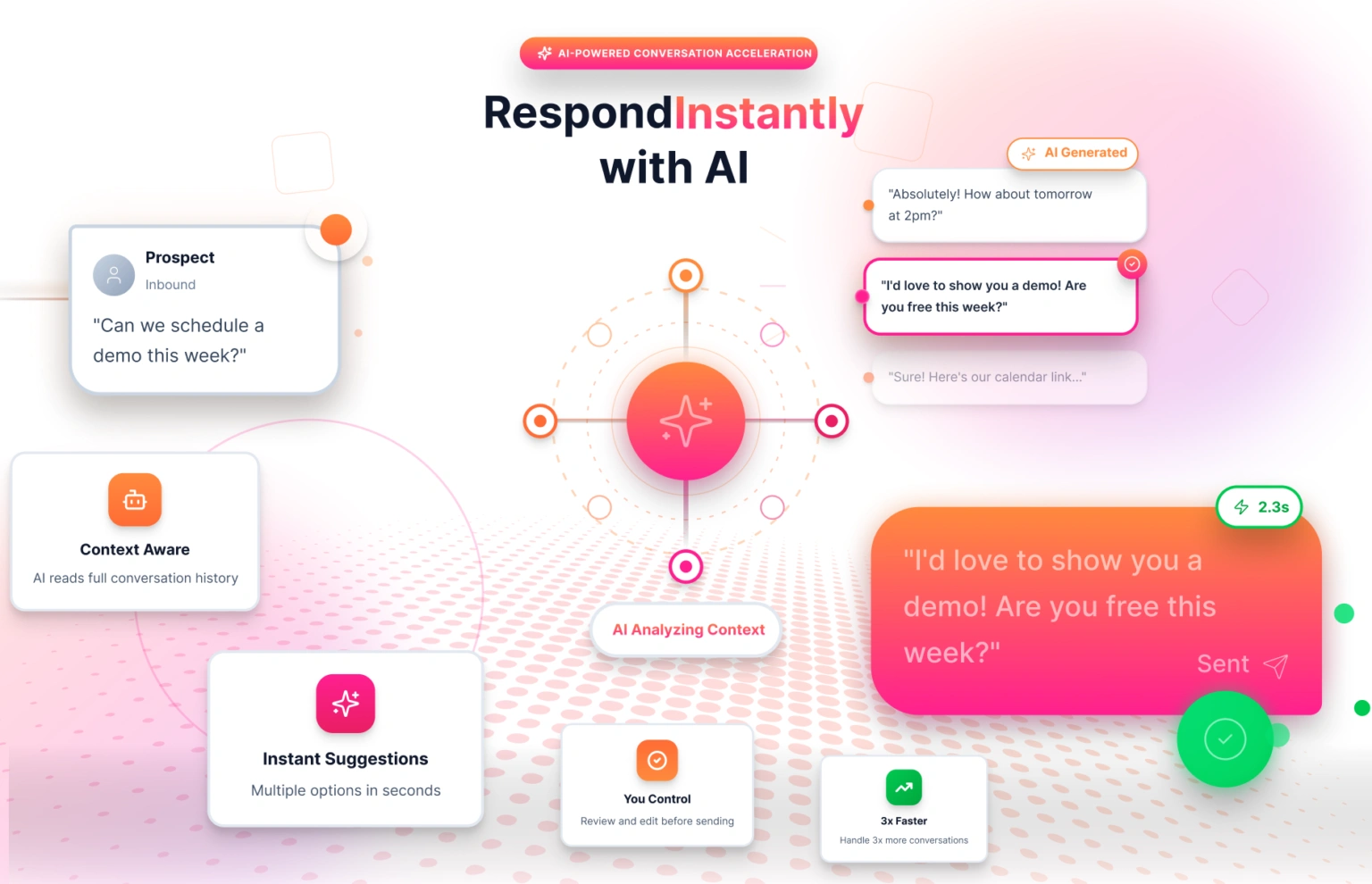 AI replies suggest response drafts based on the conversation context and tone of incoming messages. Suggested replies help sales teams respond faster, stay consistent, and manage higher reply volumes while reviewing and editing every message before sending.