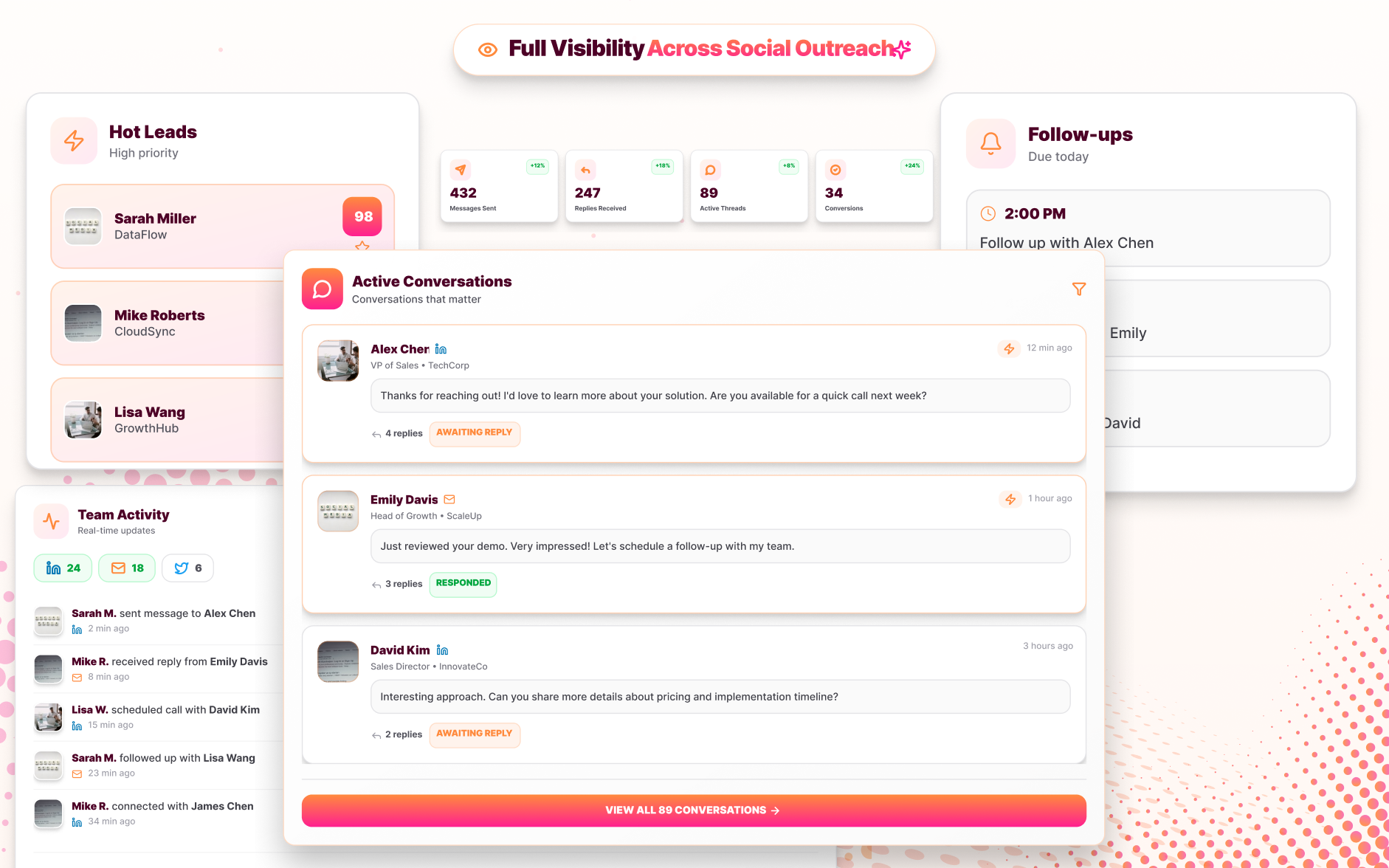 See outreach activity, replies, and follow-ups together, so teams stay aligned and focus on conversations that matter.