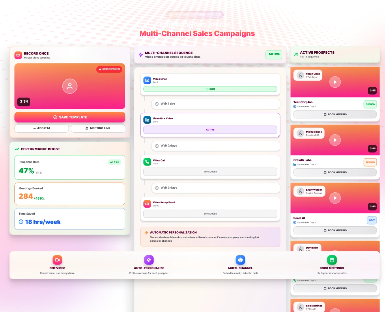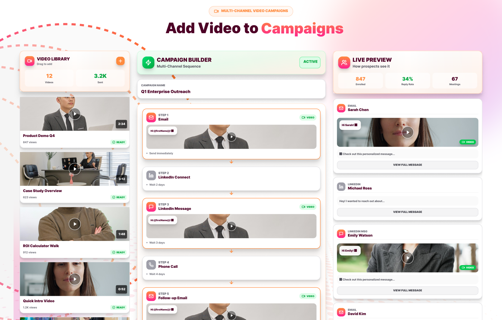 Prospects receive dozens of sales messages every day. Video outreach helps your message stand out immediately. Embedding a personalized video outreach inside multi-channel campaigns builds trust faster and creates a more human connection.